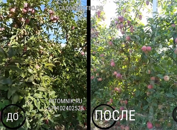 • Селективное устранение листьев позволяет улучшить воздействие солнца, увеличивая окраску плодов.